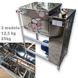 Индустриалната машина за смесване на месо е перфектният инструмент за всеки, който се занимава с обработка на месо в големи количества. Предлага се в два модела, с капацитет 12,5 кг и 25 кг, изработен е от висококачествен INOX, което гарантира издръжливост и устойчивост на корозия. Тази машина позволява ефективно и бързо смесване на месо, благодарение на мощен 1,5 kW електрически мотор.
